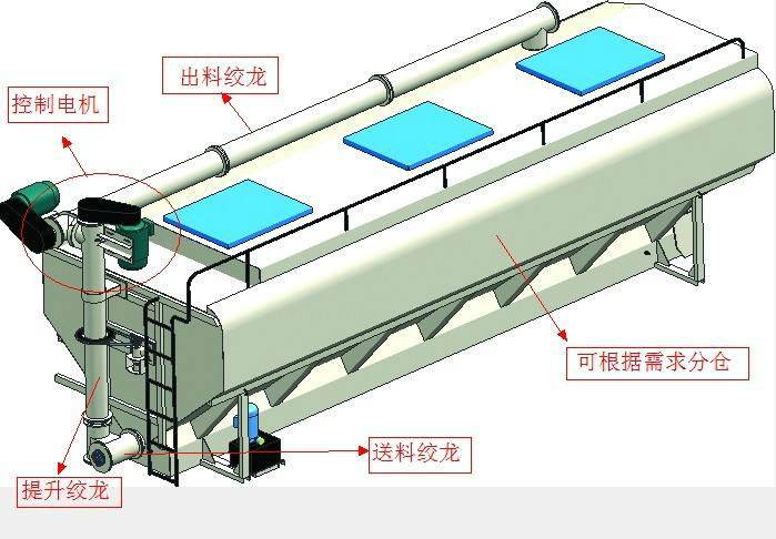 上裝罐體:罐體材質(zhì)采用4mm優(yōu)質(zhì)碳鋼板,整車3條絞龍,由3個5.5KW電機380V外接電源帶動頂部絞龍用液壓控制舉升,可左右旋轉(zhuǎn)180°。罐體內(nèi)分為四個倉,可以獨立控制各分倉卸料順序和速度。(備注:此報價為標配,國產(chǎn)電機,德力西電柜)